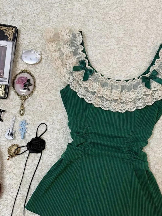 retro lace green tank top