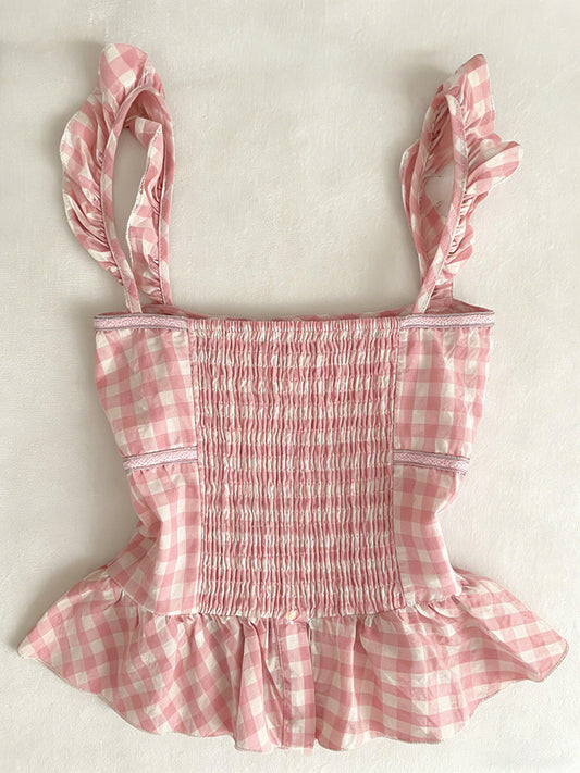 retro plaid red ruffled tank top