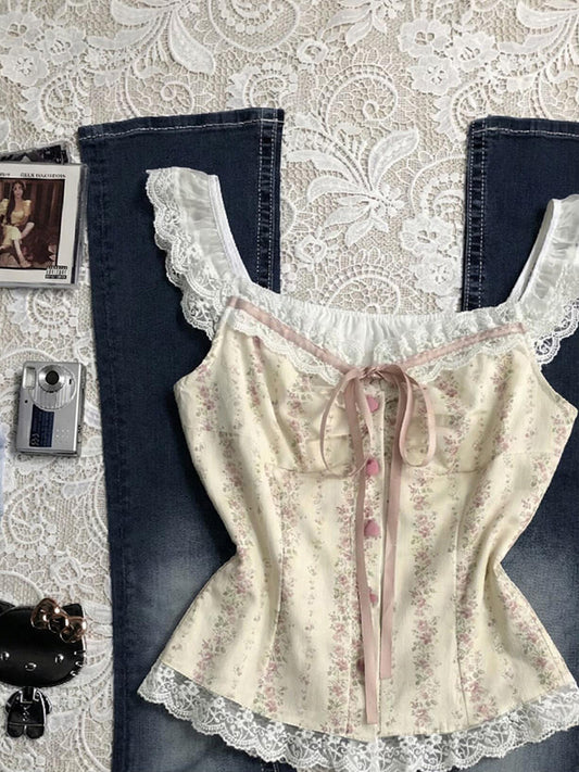 lace floral retro tank top
