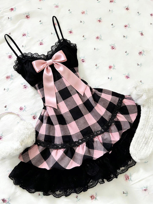retro black&pink bow dress
