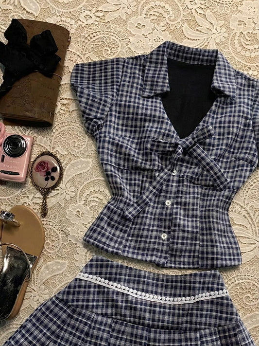 navy plaid shirt suit