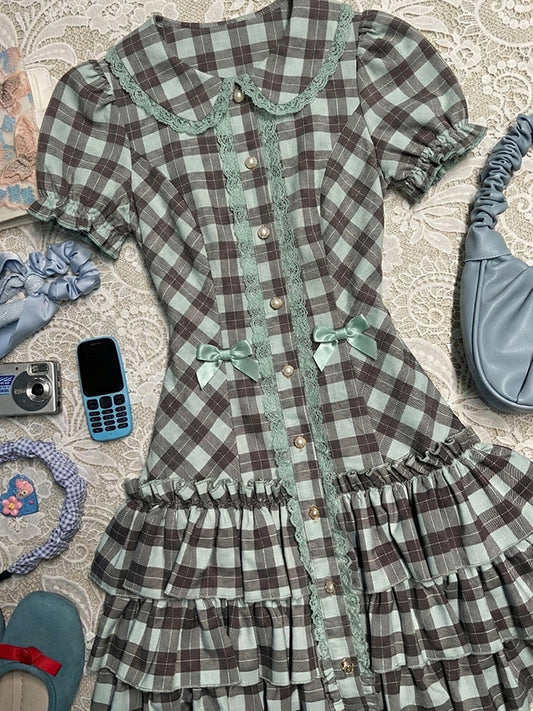 retro green plaid dress