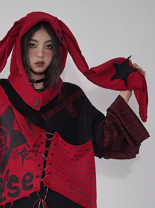 Star red and black hole heart hardware hat scarf