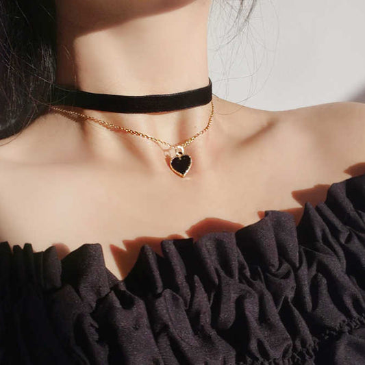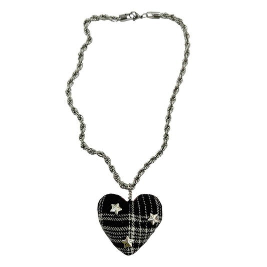 Y2K "THE HEART" Plaid Patchwork Necklace