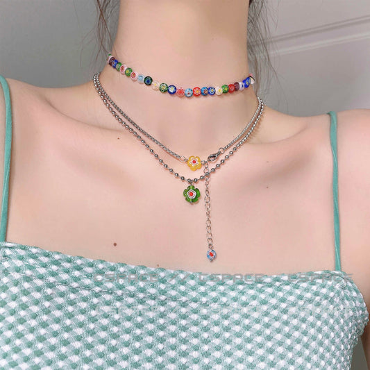 Indie Aesthetic Flower Colorful Necklace