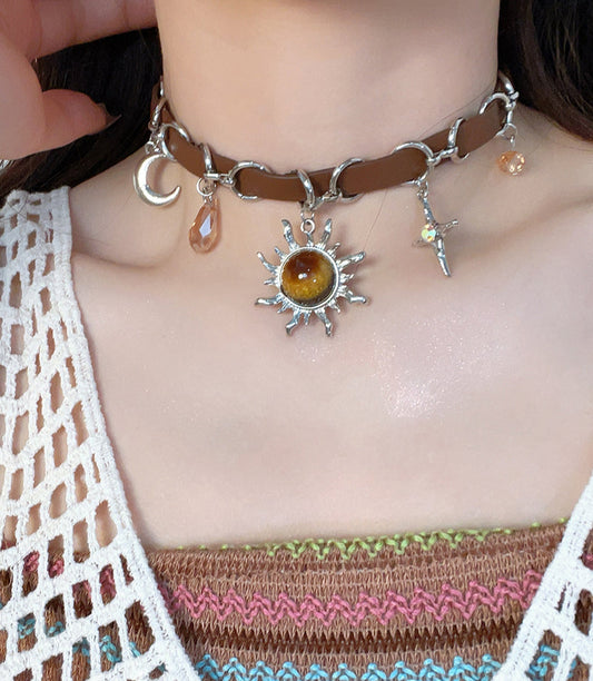 Retro Sun Leather Necklace