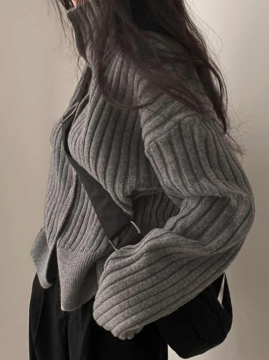 Acubi Chic High-neck Knitted Cardigan
