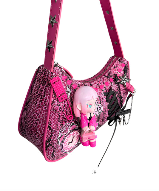 Y2K Pink Snake Texture Strap Shoulder Bag