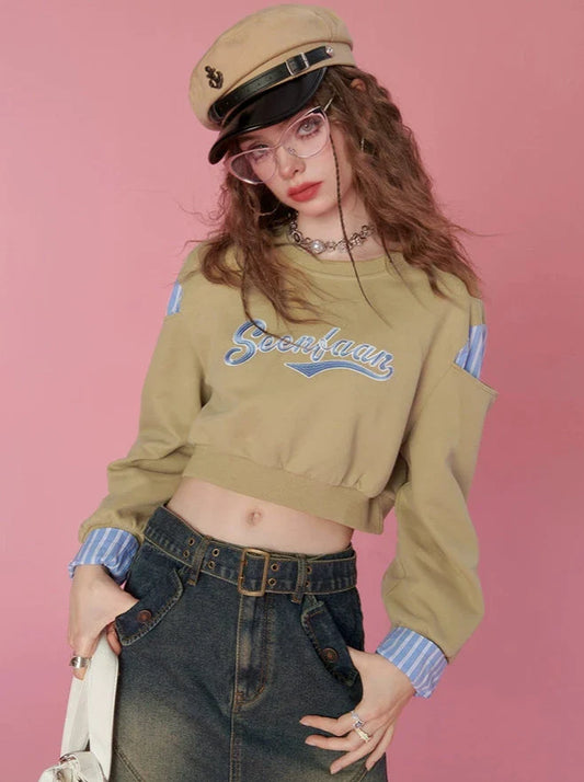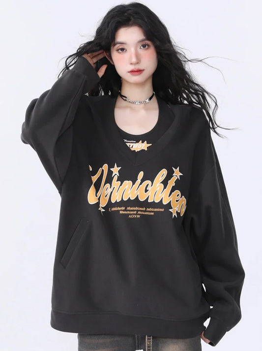 American Retro Casual Loose Two Piece Letter Print Sweatshirt