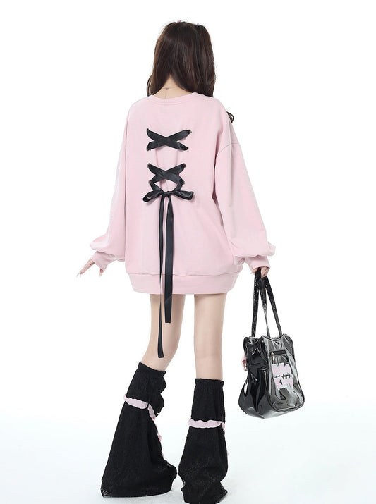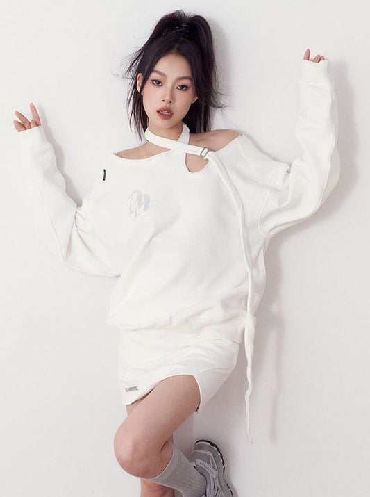 Diamond Ribbon Pure Dzire Halter Neck Sweatshirt + Tight Short Skirt