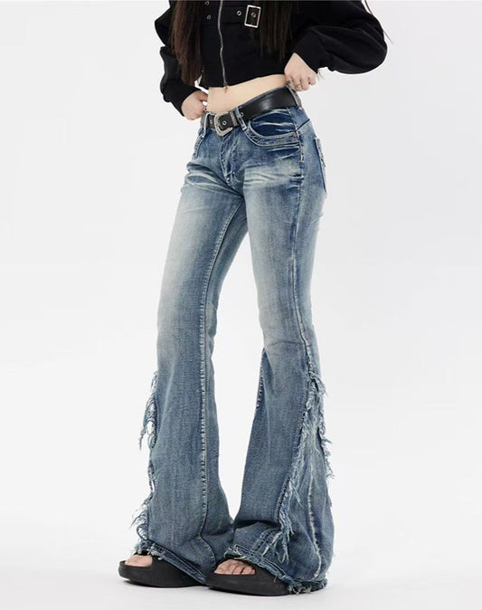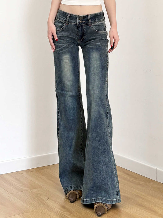 Y2K Retro Distressed Blue Bell Bottom Jeans