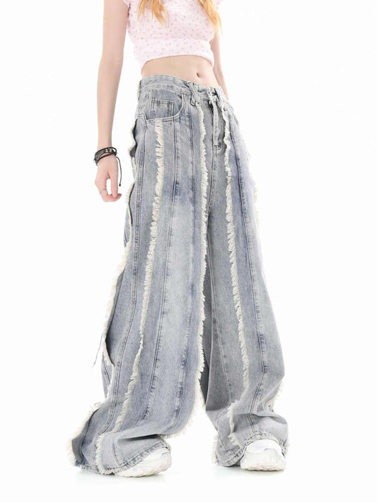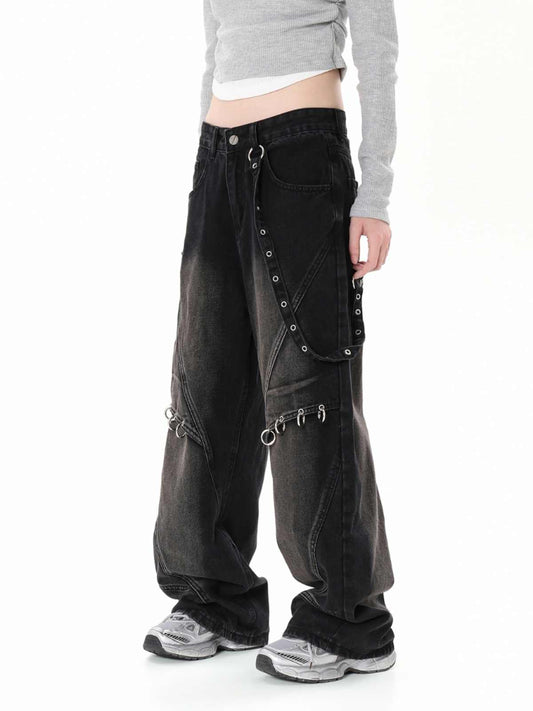 Grunge Street Straps Ripped Wide-leg Jeans