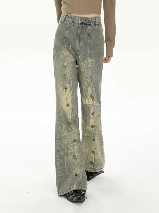 Grunge Cross Straight Flare Jeans