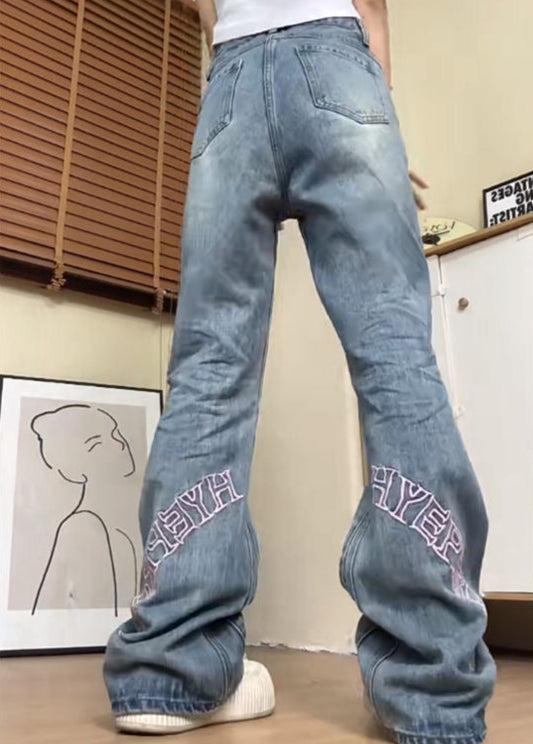 Star Patched Ripped Retro Street Jeans