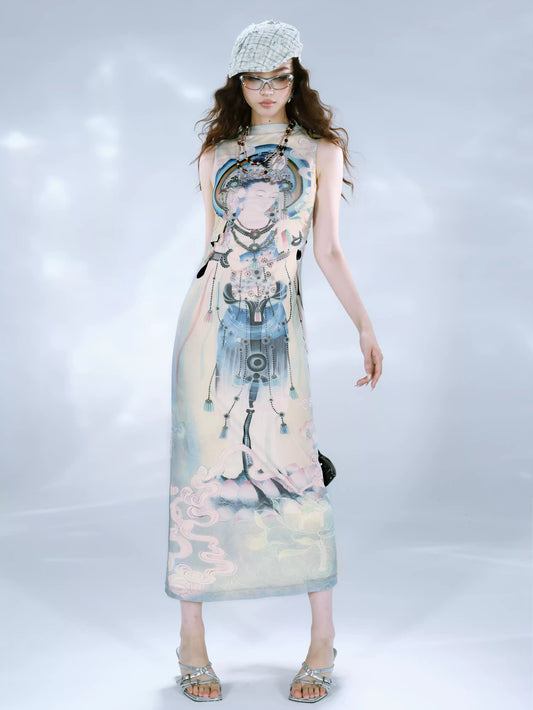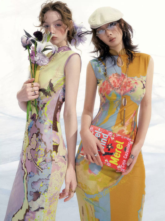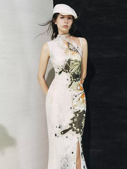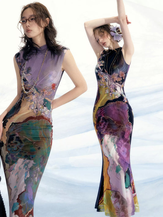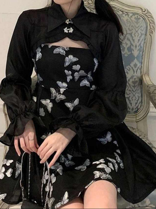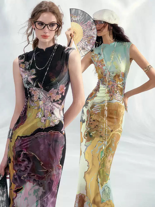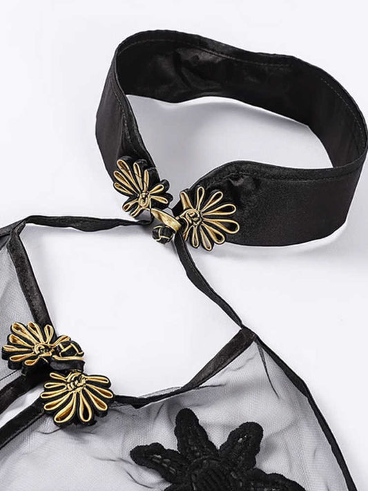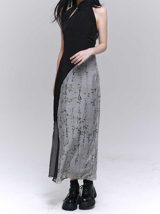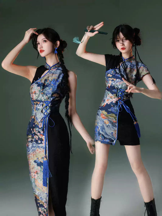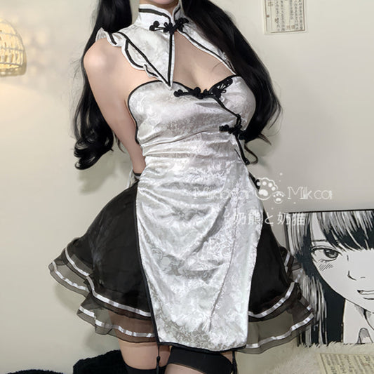 Dark Coquette Cheongsam Dress with Chiffon Blouse