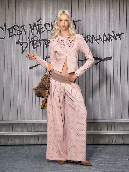 Pink Lace Cardigan two-piece Suit