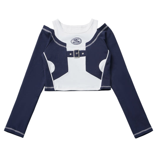 baby blue bow long-sleeved top coord