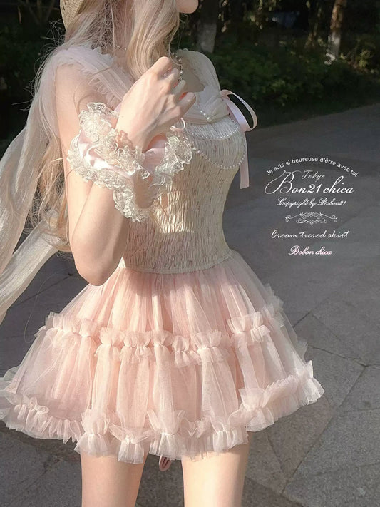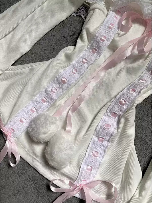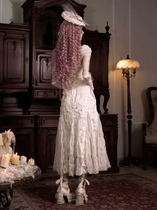 Pure Cotton Love Bow Hollow Lace Suspender Dress