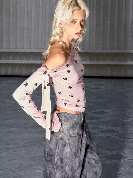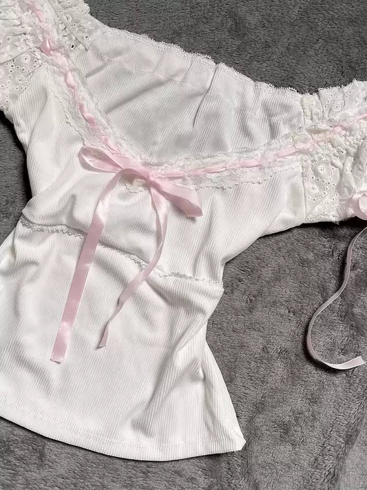 Peter Pan Off-shoulder Pink Long-sleeved Top
