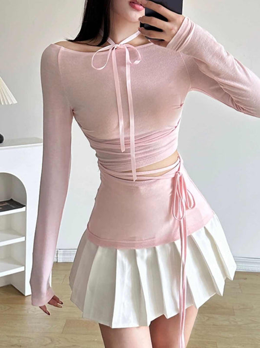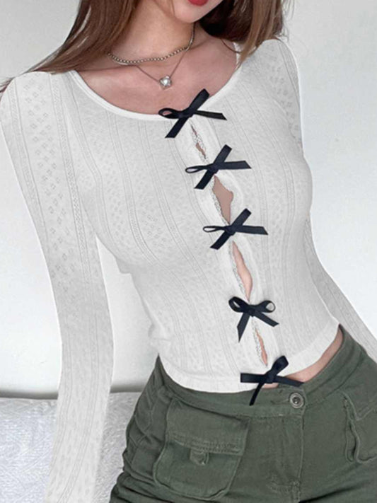 Coquette Bow Lace Long-sleeved Top