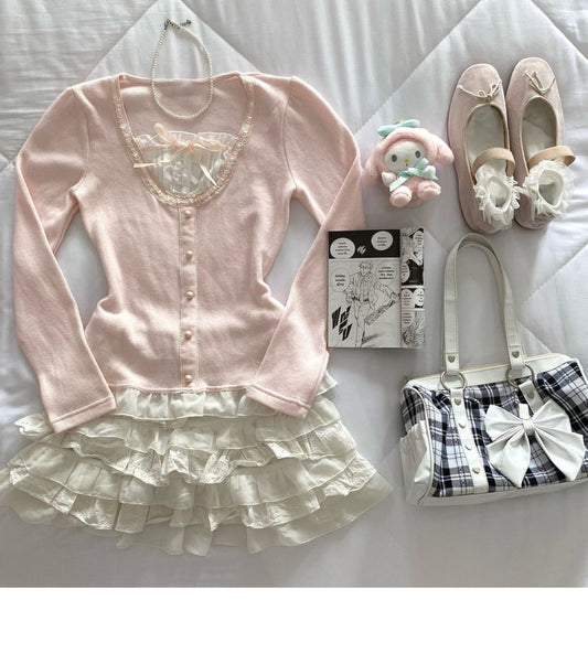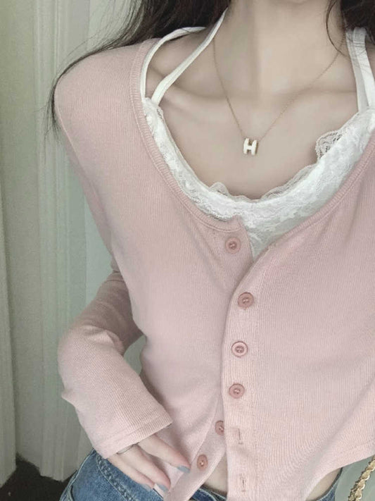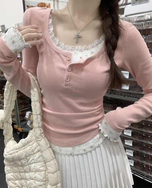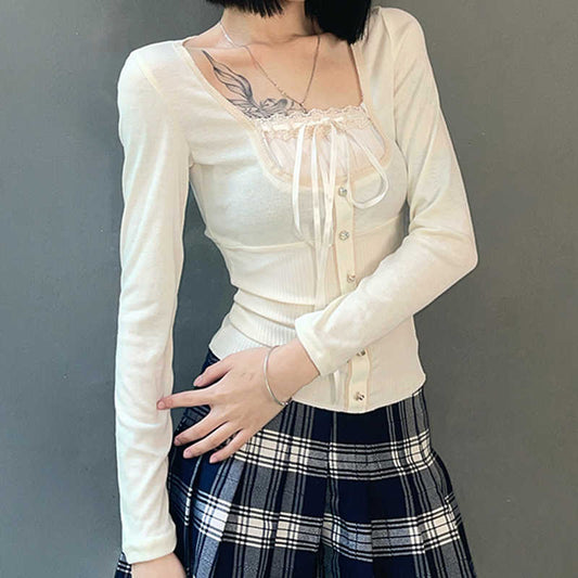 Coquette Ballet Fake Two-piece Long-sleeved Top