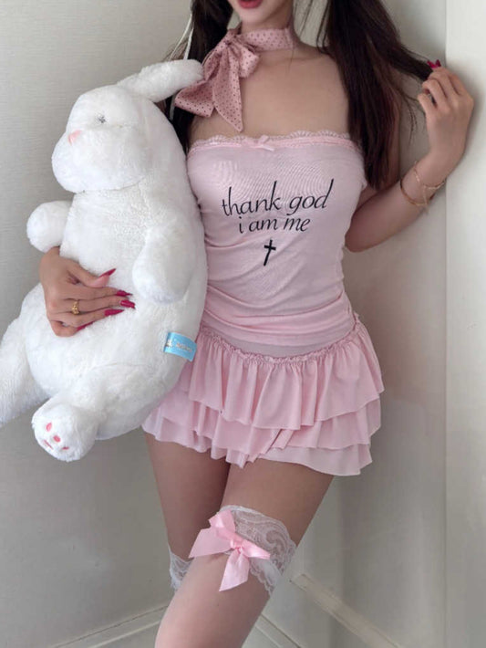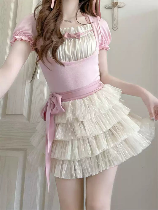 Puff Ballet Tube Top Cake Skirt Set