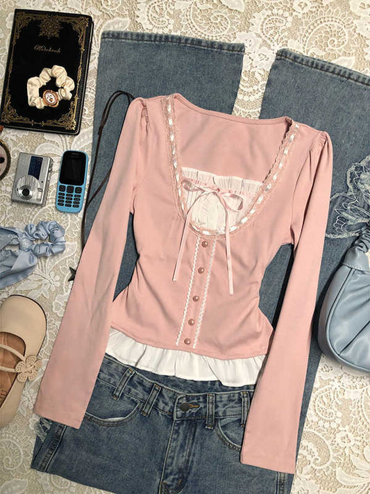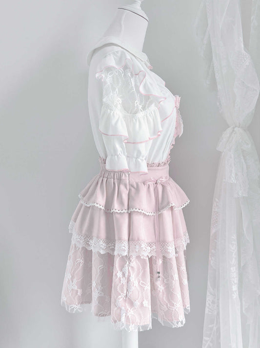 Sweet Lace Shirt Two-piece Set