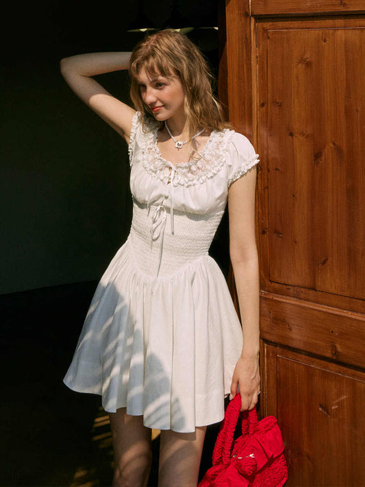 Bow-tie Waist-hugging Lace Dress