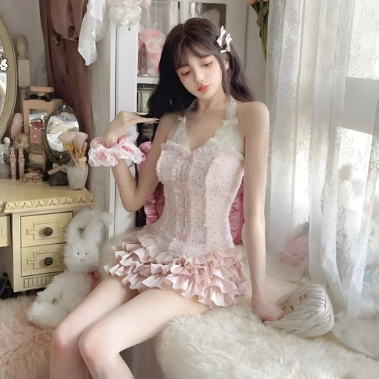Coquette Corset Top & Ruffled Mini Skirt Two Piece Set