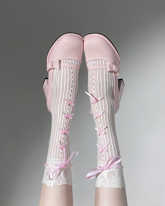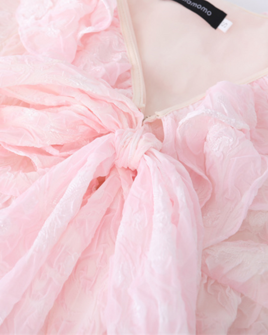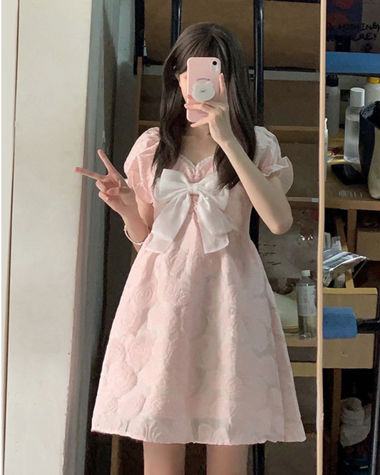 Sweet Pink Bow Princess Puff Sleeves Coquette Dress
