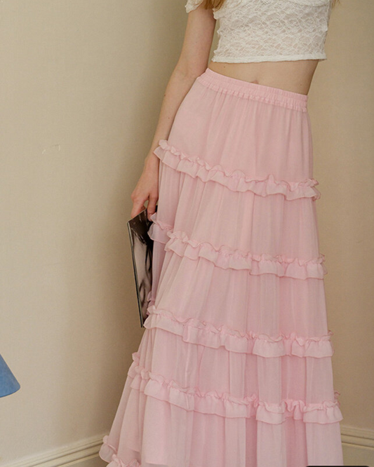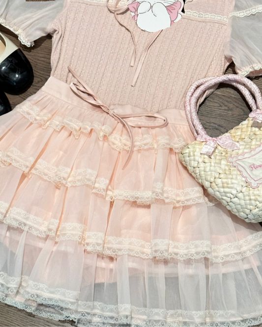 Ballet Light Pink Ruffle Rrose Skirt Coord