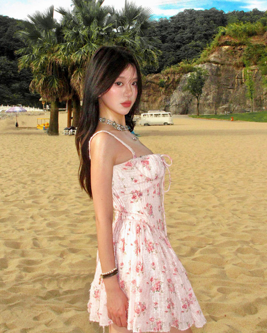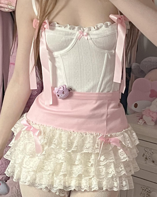 Sweet Spicy Pink Bow Spliced Cake Tube Mini Coquette Dress
