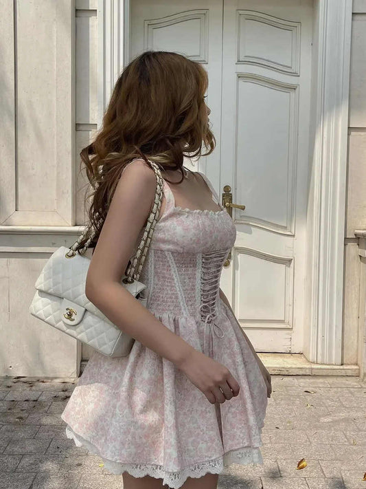 Straps Floral Princess Suspender Dress
