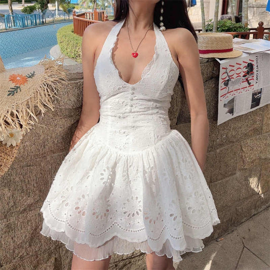 Hollow Cotton Halter-neck Dress