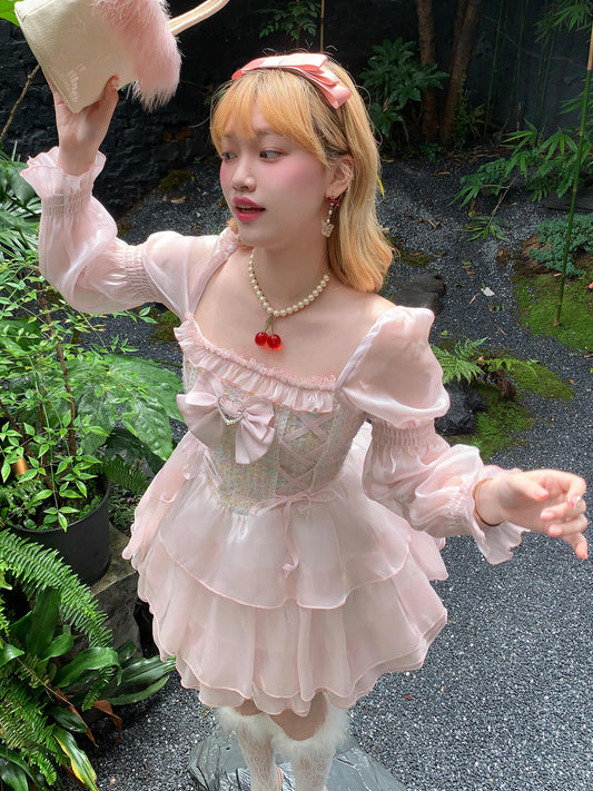 Pink Lace Cardigan Three-piece Suit
