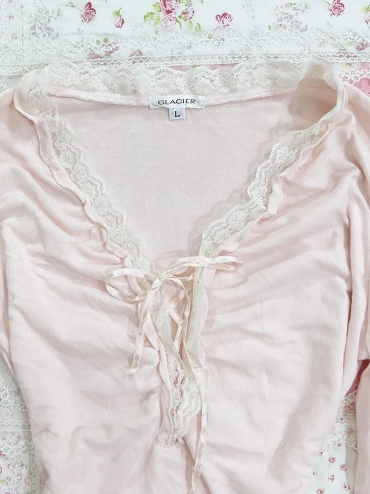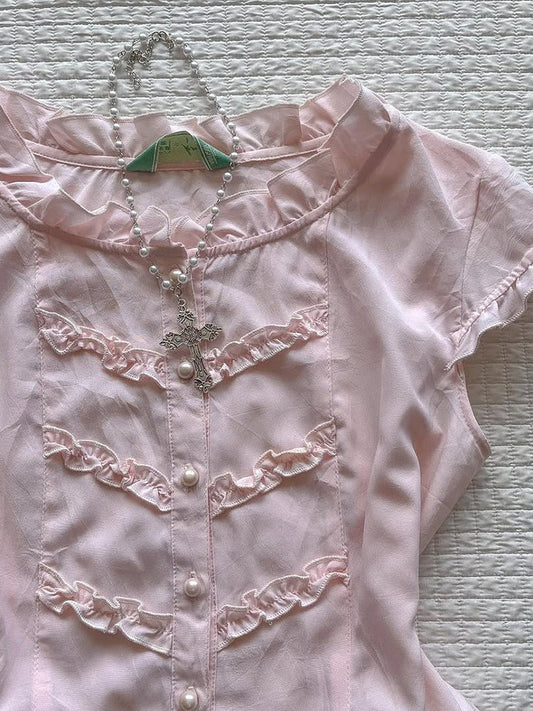 Vintage Fake Two-Piece Lace Cropped T-Shirt