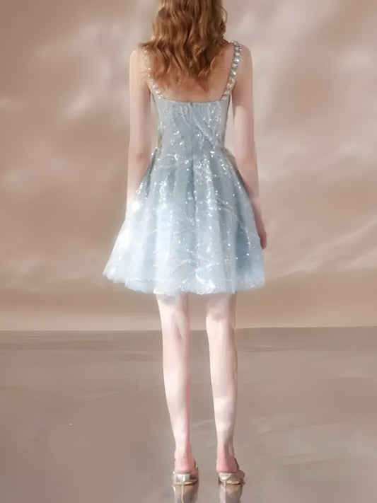 Flare Cuffs Off Shoulder Mesh Mini Dress