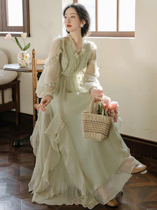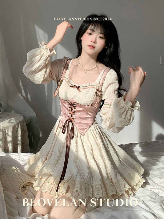 Classical Lolita JSK Dress Flounce Dress Long Sleeve Blouse