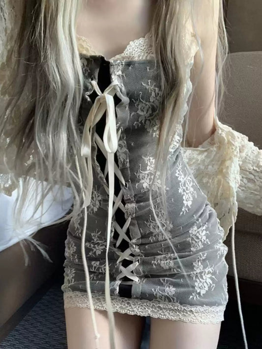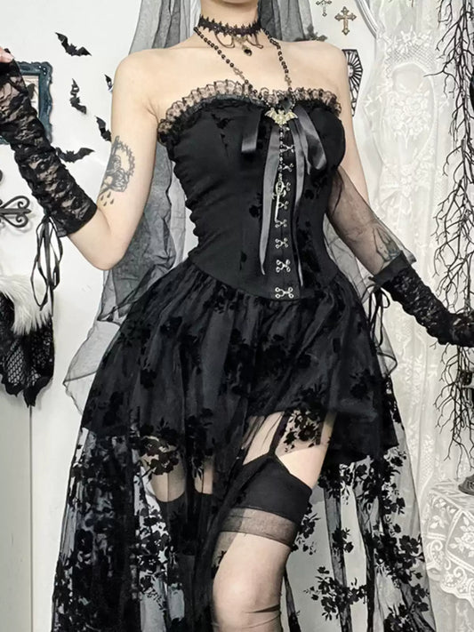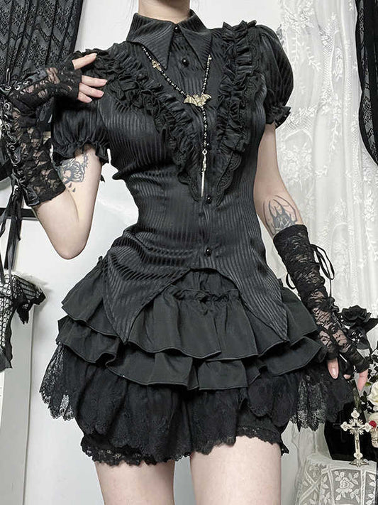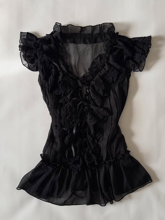 Dark Coquette Lace Polka Dot Chiffon Shirt