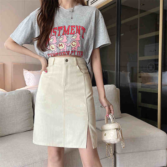 Preppy Aesthetic Mid-length Denim Skirt