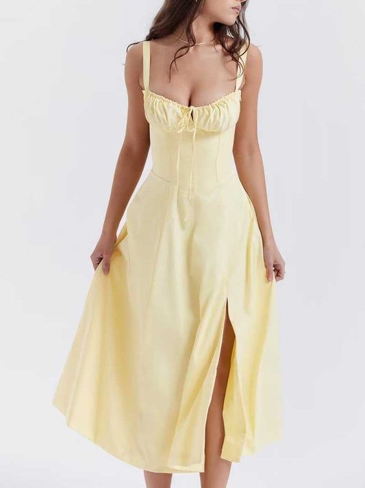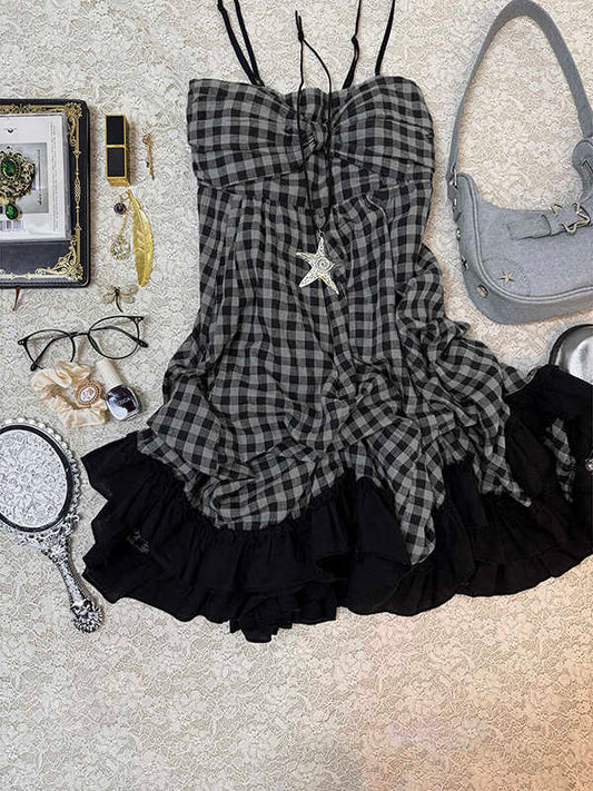 Pink Gradient Multi-layered Gauze Halter Backless Dress