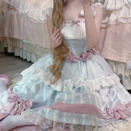 Baby Blue Mesh Pink Bow Lolita Dress