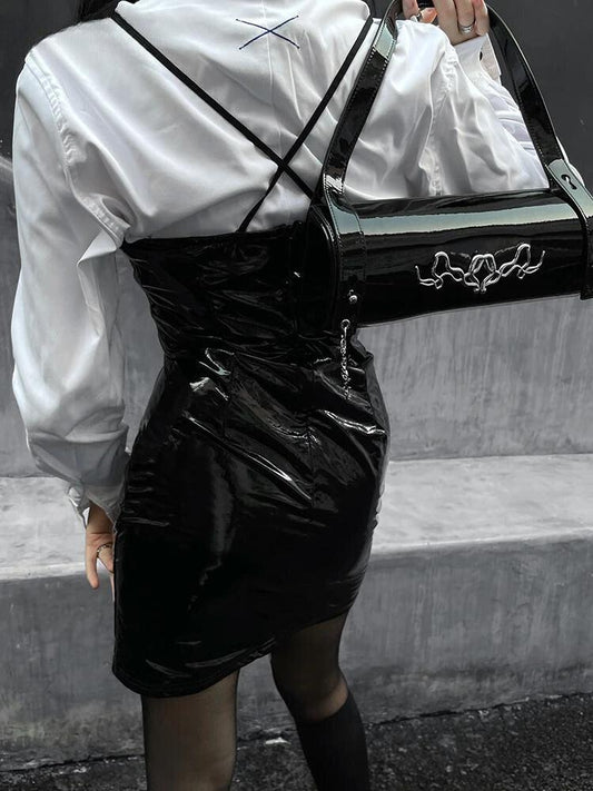 Cyberpunk Faux Patent Leather Mini Dress