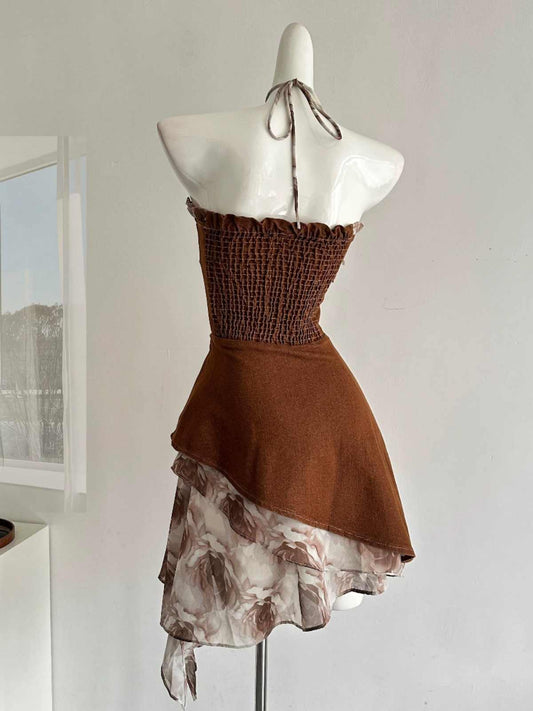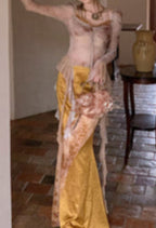 Lace Knitted Stretch Irregular Tube Top + Gold Spliced Skirt Set