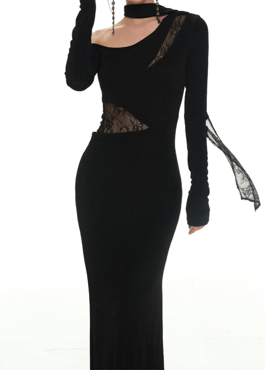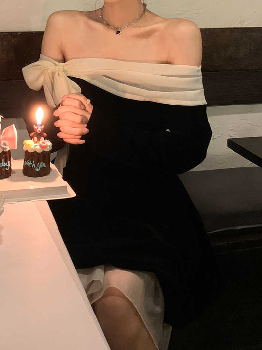 Off The Shoulder Shimmering Knitted Dark Coquette Dress