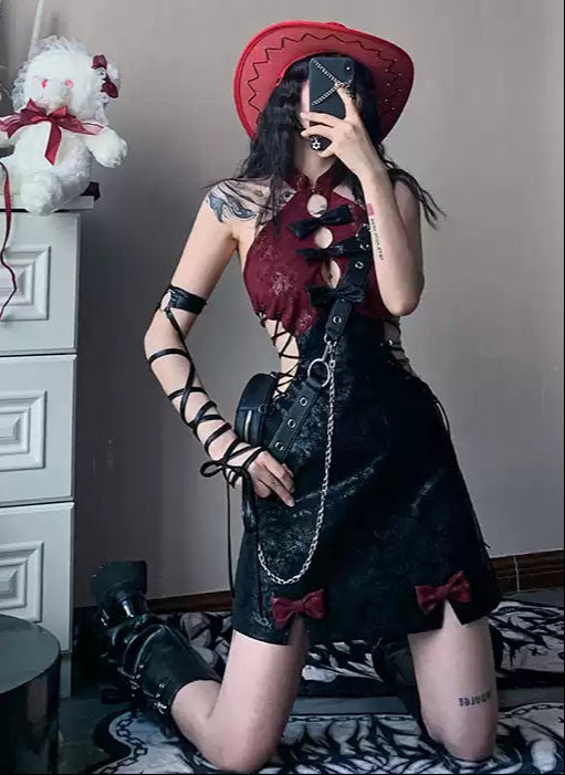 Lolita Bow Red Suspender Dress