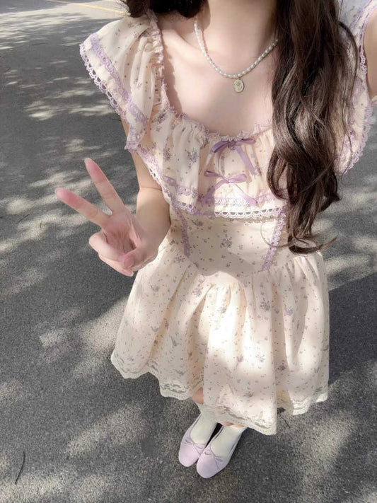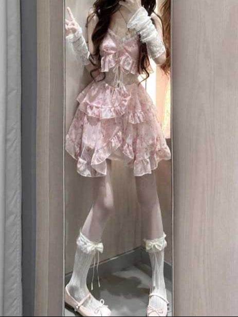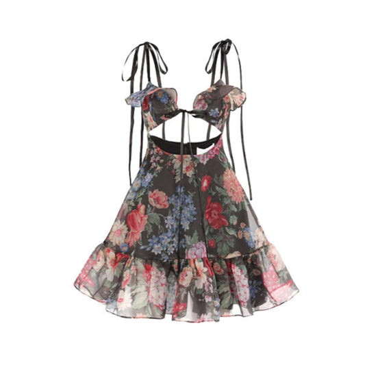 Pink Rose Floral Ruffle Halter Top & Skirt