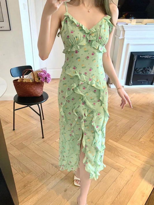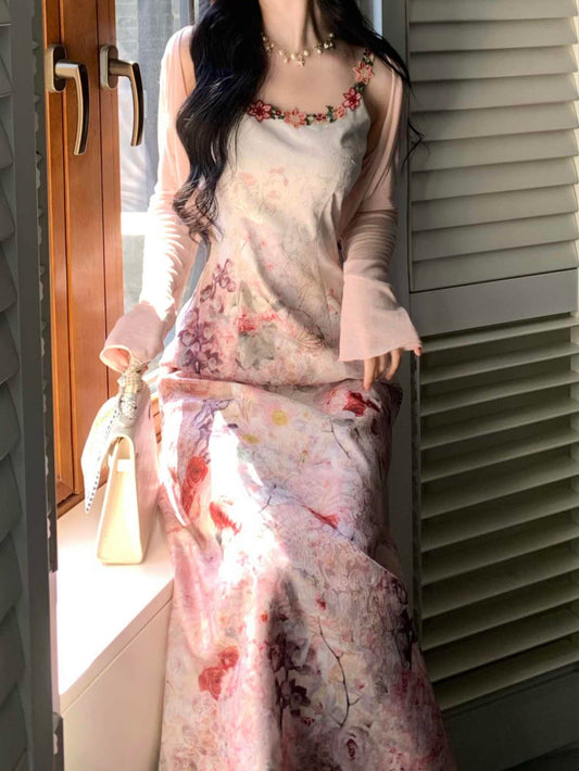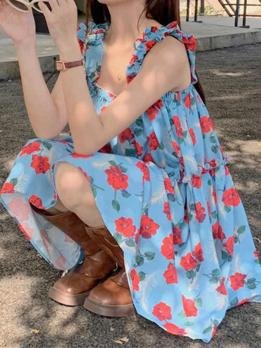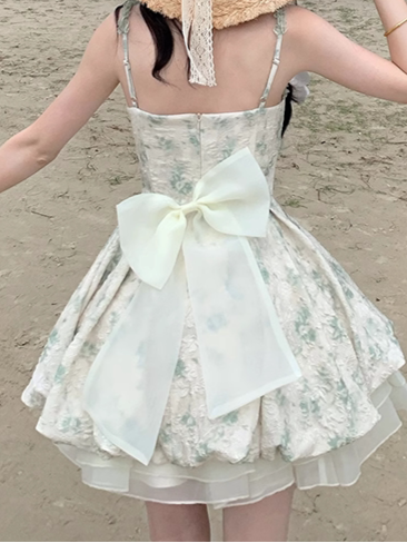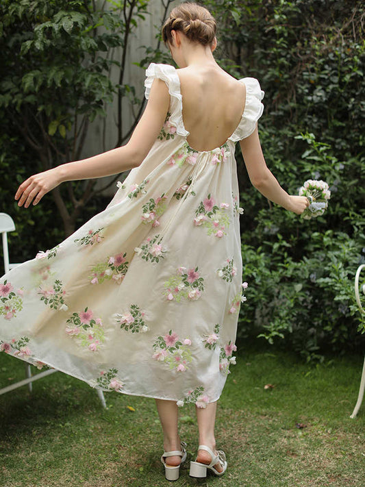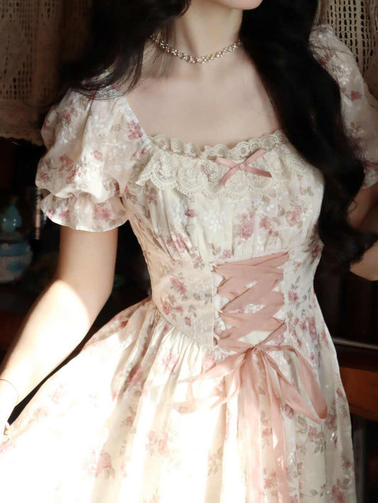 Off-shoulder Mesh Floral Puff-sleeved Dress