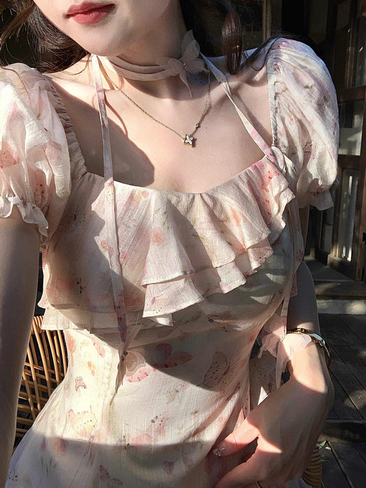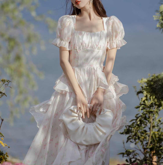French Floral Ruffled Coquette Dress