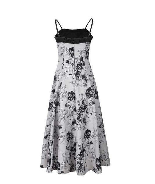 French Floral Romantic Suspender Dress